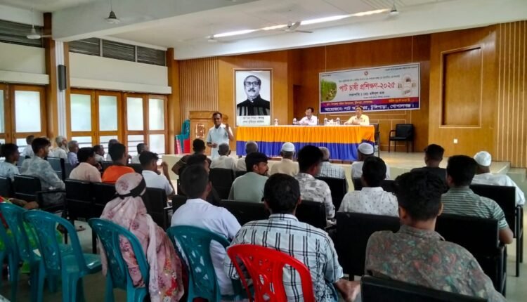 গোপালগঞ্জের টুঙ্গিপাড়া উপজেলায় ২৮ মে ২০২৫ তারিখে অনুষ্ঠিত হলো পাট চাষিদের জন্য একটি গুরুত্বপূর্ণ প্রশিক্ষণ কর্মশালা। “উন্নত প্রযুক্তি নির্ভর পাট ও পাটবীজ উৎপাদন এবং সম্প্রসারণ (প্রথম সংশোধিত)” প্রকল্পের আওতায় এই কর্মশালার আয়োজন করা হয়। সকাল ৯টা থেকে দুপুর ২টা পর্যন্ত চলা এই প্রশিক্ষণে উপজেলার বিভিন্ন এলাকার পাট চাষিরা অংশগ্রহণ করেন।