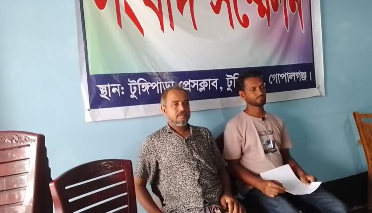 সংবাদ সম্মেলনে লিখিত বক্তব্যে শামিম শেখ বলেন, আমার শ্বশুর মনিরুজ্জামান উলু দীর্ঘদিন ধরে টুঙ্গিপাড়া উপজেলার গোপালপুর এলাকায় খামার ও মাছের ঘেরের ব্যবসা করে আসছে। গত ১৮ জুন আমার শশুর মনিরুজ্জামান ও শ্যালক জুয়েল মোটরসাইকেল করে ঘের থেকে টুঙ্গিপাড়ার দিকে আসছিলো। তারা গোপালপুর রোডের চাপড়াইল ব্রীজের উপর পৌছালে ইউনিয়ন ছাত্রদলের যুগ্ম আহ্বায়ক প্রান্ত তালুকদার ও তার কয়েকজন সহযোগী তাদের পথরোধ করে। তখন পথ আটকানোর কারন আমার শ্বশুর জানতে চাইলে প্রান্ত বলেন আপনারা দীর্ঘদিন ধরে ব্যবসা করছেন। কিন্তু আমাদের কোন সহযোগিতা করেন না। “আমরা বিএনপির লোক, তাই এখানে ব্যবসা করতে হলে আমাদের টাকা দিতে হবে।