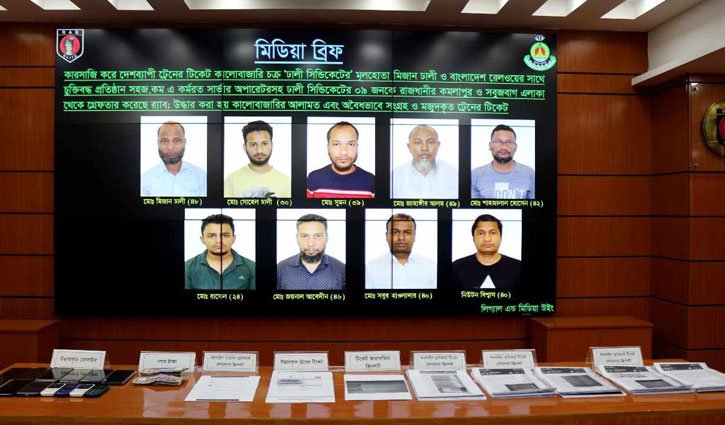ট্রেনের টিকিট কালোবাজারির অভিযোগে টিকিট বিক্রির দায়িত্বপ্রাপ্ত কোম্পানি সহজ ডটকমের অফিস সহকারীসহ ৯ জনকে গ্রেপ্তার করেছে র‌্যাব। তাদেরকে বৃহস্পতিবার রাতে রাজধানীর কমলাপুর ও সবুজবাগ থেকে গ্রেপ্তার করা হয়। শুক্রবার (২২ মার্চ) র‌্যাব-৩ থেকে এ তথ্য জানানো হয়। র‌্যাব জানায়, কারসাজি করে দেশব্যাপী ট্রেনের টিকিট কালোবাজারি চক্রের অন্যতম হোতা ও বাংলাদেশ রেলওয়ের সঙ্গে চুক্তিবদ্ধ প্রতিষ্ঠান সহজ ডটকমের অফিস সহকারী মিজান ঢালী ও অপারেটর এবং দুজনসহ টিকিট কালোবাজারি চক্রের ৯ জনকে গ্রেপ্তার করা হয়েছে।এ সময় তাদের কাছে অবৈধভাবে সংগ্রহ করা ট্রেনের টিকিট উদ্ধার করা হয়। গ্রেপ্তারকৃতরা হলেন-মিজান ঢালী, মো. সোহেল ঢালী, মো. সুমন, মো. জাহাঙ্গীর আলম, মো. শাহজালাল হোসেন, মো. রাসেল, মো. জয়নাল আবেদীন, মো. সবুর হাওলাদার ও নিউটন বিশ্বাস। র‌্যাব জানায়, দেশব্যাপী ট্রেনের টিকিট কালোবাজারি ঢালী সিন্ডিকেটের হোতা মিজানের নেতৃত্বে চক্রটি সংঘবদ্ধভাবে দীর্ঘদিন ধরে বাংলাদেশ রেলওয়ের প্রায় সব ট্রেনের টিকিট কালোবাজারি করে আসছিল। মিজান দীর্ঘদিন ধরে রেলওয়ের টিকিট বুকিংয়ের জন্য চুক্তিবদ্ধ প্রতিষ্ঠানগুলোর সাথে যুক্ত রয়েছে। ২০০৩ সালে সে চুক্তিবদ্ধ প্রতিষ্ঠান ডেফোডিল এর কমলাপুর রেলস্টেশন শাখায় পিয়ন হিসেবে যোগ দেয়। পরবর্তীতে বাংলাদেশ রেলওয়ের টিকেট বুকিংয়ে সিএনএসডটবিডি এর এর সাথে চুক্তিবদ্ধ হলে, অভিজ্ঞ কর্মী হিসেবে তাকে চাকরিতে পুনঃবহাল রাখা হয়। সর্বশেষ ২০২০ সালে রেলওয়ে টিকেটের চুক্তি সহজ ডটকমকে দেওয়া হলে সেখানেও মিজানের চাকরি বহাল থাকে। দীর্ঘদিন টিকিটের দায়িত্বপ্রাপ্ত চুক্তিবদ্ধ প্রতিষ্ঠানগুলোর সাথে যুক্ত থাকায় দেশব্যাপী বিভিন্ন স্টেশনের সহজ ডটকমের অফিসে এবং বড় বড় রেলওয়ে স্টেশনের কর্মচারীদের সাথে তার পরিচিতি বৃদ্ধি পায়। পরিচয়ের সূত্র ধরে সে বিভিন্ন স্টেশনে থাকা সহজ ডেটকমের সদস্য, টিকিট কাউন্টার ও অন্যান্য কালোবাজির চক্রের সদস্যদের সমন্বয়ে বিভিন্ন কারসাজির মাধ্যমে বিপুল পরিমাণ টিকিট বিক্রি করতো। সহজ ডটকমের কমলাপুর রেলস্টেশন সার্ভার রুমের সার্ভার অপারেটর গ্রেপ্তারকৃত নিউটন বিশ্বাস, স্টেশন রিপ্রেজেন্টেটিপ সবুর হাওলাদারসহ এবং পলাতক আব্দুল মোত্তালিব, আশিকুর রহমানসহ আরও কয়েকজন উক্ত টিকিট কালোবাজারির সাথে জড়িত। র‌্যাব আরও জানায়, ঈদ, পূজা, সাপ্তাহিক ছুটিসহ বিশেষ ছুটির দিনকে উপলক্ষ করে গ্রেপ্তারকৃত মিজান ও সোহেল বিভিন্ন কারসাজির মাধ্যমে সাধারণ সময়ের তুলনায় অধিক সংখ্যক টিকিট সংগ্রহ করতো। মিজান ও সোহেল প্রতি বছর ঈদ মৌসুমে দেশব্যাপী বিভিন্ন স্টেশনের সহজ ডটকমের কর্মচারী ও টিকিট কাউন্টারম্যানদের মাধ্যমে আনুমানিক প্রায় 