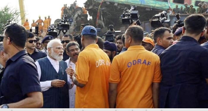 এ সময় প্রধানমন্ত্রী নরেন্দ্র মোদির সঙ্গে দেশটির কেন্দ্রীয় রেলমন্ত্রী অশ্বিনী বৈষ্ণব এবং শিক্ষামন্ত্রী ধর্মেন্দ্র প্রধানকেও দুর্ঘটনাস্থল পরিদর্শন করতে দেখা যায়। ঘটনাস্থল থেকে মন্ত্রিপরিষদ সচিব ও স্বাস্থ্যমন্ত্রীর সঙ্গে কথা বলেন নরেন্দ্র মোদি। তিনি আহতদের ও তাদের পরিবারের জন্য প্রয়োজনীয় সহায়তা নিশ্চিত করার নির্দেশ দেন।