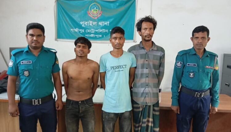 গাজীপুর মহানগরের পূবাইল থানা এলাকার মাজুখান থেকে দুর্ধর্ষ মাদকসম্রাট ও চিহ্নিত একাধিক মামলার পলাতক আসামি সুজনকে ডাকাতির প্রস্তুতিকালে গ্রেফতার করেছে পূবাইল থানা পুলিশ। ওই সময় তার সাথে থাকা আরও দুইজন ডাকাতকে গ্রেফতার করতে সক্ষম হয় পুলিশ।অন্য কয়েকজন পালিয়ে যায় বলে জানা গেছে। রোববার দিবাগত রাতে গোপন সংবাদের ভিত্তিতে পূবাইল থানার ৩৯নং ওয়ার্ডের নিমতলা ব্রীজের ঢাল থেকে তাদের গ্রেফতার করা হয়। পুলিশের উপস্থিতি টের পেয়ে এসময় দলের কয়েকজন পালিয়ে যায় বলে জানা গেছে। মাদকসম্রাট সূজন মিয়া অপ্রতিরোধ্যভাবে পূবাইল থানার ৪০ নং ওয়ার্ডের মাজুখান এলাকায় মাদককারবারি ও কুখ্যাত মাদকসম্রাট হিসাবে পরিচিত।সে দীর্ঘদিন যাবত মাদকদ্রব্য বিক্রিসহ যুবসমাজকে ধ্বংসের দ্বারপ্রান্তে পৌঁছে দিতে বিশেষ ভূমিকা রাখছে প্রকাশ্যভাবে। তার ভয়ে কেউ টু শব্দটি করার সাহস পায়না।এমনই অভিযোগ এলাকাবাসীর।সূজনকে গ্রেফতার করার খবরে পূবাইলের মাজুখান এলাকায় জনমনে স্বস্তি ফিরে এসেছে। গ্রেফতার সূজন মিয়া পূবাইল থানার মাজুখান এলাকার মৃত রহম আলীর ছেলে। অন্যরা হলেন শিপন মিয়া টাঙ্গাইল জেলার ধনবাড়ি থানার কদমতলী গ্রামের হারুন মিয়ার ছেলে ও মাসুম মিয়া পূবাইল থানার মাজুখান উত্তর পাড়ার হযরত আলীর ছেলে। পূবাইল থানার ওসি শেখ আমিরুল ইসলাম দৈনিক দেশ বর্তমানকে জানান আসামীদের বিরুদ্ধে আইনগত ব্যবস্থা গ্রহণ শেষে বিজ্ঞ আদালতের মাধ্যমে কারাগারে প্রেরণ করা হয়েছে।