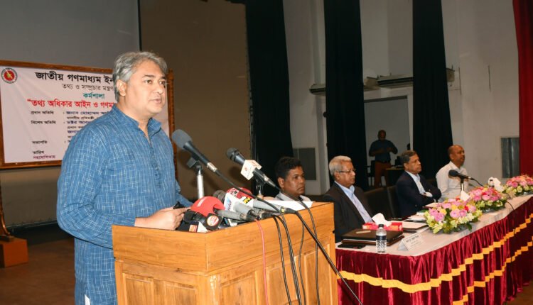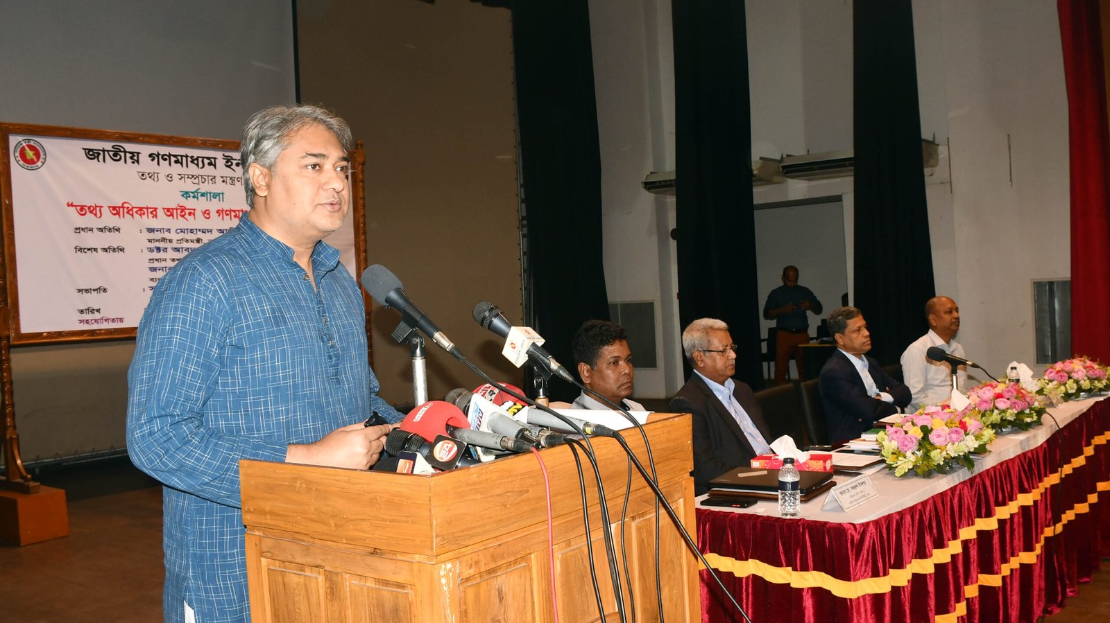 প্রতিমন্ত্রী বলেন, তথ্য অধিকার আইনকে আমরা আরো প্রতিষ্ঠিত করতে চাই। আমরা চাই, সাংবাদিকরা যেনো এই আইন ব্যবহার করে আরও ক্ষমতাপ্রাপ্ত হোন, এই আইনের পুরোপুরি ব্যবহার করতে পারেন এবং তার উপযোগিতা আমরা সমাজে পাই। একই সাথে আমরা এই আইনের দায়িত্বশীল ব্যবহার দেখতে চাই। যাদের এই আইনের অধীনে তথ্য দেওয়ার বাধ্যবাধকতা আছে তাদের প্রতি আহ্বান থাকবে যেন তথ্য চাওয়া হলে সেটি দেওয়া হয়। জনগণের পক্ষ থেকে যখন গণমাধ্যম তথ্য চাইবে, সে তথ্য দ্রুততম সময়ের মধ্যে দেওয়া নিশ্চিত করতে হবে। সঠিক তথ্য যত দ্রুততম সময়ের মধ্যে সরবরাহ করা হবে, ততো গুজব বা অপপ্রচার হওয়ার সুযোগ কম হবে। তিনি আরও বলেন, যে তথ্য জনগণের বলে তথ্য অধিকার আইন নিশ্চিত করছে, সেই তথ্য গণমাধ্যমকে দিতে হবে। এই তথ্যগুলো যত দ্রুততার সাথে সহজলভ্য করা যায়, বাংলাদেশ ব্যাংকসহ এই ধরণের অন্যান্য সকল প্রতিষ্ঠানের জন্য ততো ভালো। আমাদের সবার এই মানসিকতা তৈরি করা দরকার যে, সঠিক তথ্য যত দ্রুত জনগণের কাছে চলে আসবে, এটা আমাদের জন্য মঙ্গল। তথ্য প্রতিমন্ত্রী আরও বলেন, সরকার চায় তথ্য অধিকার আইনের আওতায় যারা তথ্য দেবেন, তথ্য দেয়ার ক্ষেত্রে তাদের মধ্যে যেনো কোন ধরণের জড়তা বা মানসিক বাধা না থাকে। সরকার আরও চায় সরকারি প্রতিটি প্রতিষ্ঠান দ্রুততম সময়ের মধ্যে তথ্য সহজলভ্য করুক। আর যারা তথ্য চাইবেন আমরা চাই তথ্য অধিকার আইন তারা সঠিকভাবে ব্যবহার করবেন। প্রশিক্ষণের মাধ্যমে এই আইন ব্যবহারের সক্ষমতা তৈরি হোক সেটাও আমরা চাই যাতে এই আইনের অপব্যবহার কেউ না করে। বাংলাদেশ ব্যাংকের তথ্য দেওয়া প্রসঙ্গ প্রতিমন্ত্রী এ সময় বলেন, একটি পরিকল্পিত প্রক্রিয়ার মাধ্যমে বাংলাদেশ ব্যাংকের তথ্য সহজলভ্য করা হবে। তিনি আরও বলেন, অপসংবাদিকতা হলে তার সবচেয়ে বড় শিকার হয় পেশাদার সাংবাদিকরা। অপপ্রচার হলে পেশাদার সাংবাদিকতা ক্ষতিগ্রস্ত হয়। সকল আইনেই কিছু অসৎ ব্যক্তি অপব্যবহারের সুযোগ নিতে চায়। সেটা আমাদের ঐক্যবদ্ধভাবে মোকাবিলা করতে হবে। কিন্তু সাইবার নিরাপত্তা আইন (সিএসএ) ব্যবহার করে কোনো সাংবাদিকতার চর্চা আটকে দেওয়ার সুযোগ নেই। সিএসএ পেশাদার সাংবাদিকতাকে সুরক্ষা দেবে। জাতীয় গণমাধ্যম ইনস্টিটিউটের অতিরিক্ত মহাপরিচালক সুফী জাকির হোসেনের সভাপতিত্বে কর্মশালায় বিশেষ অতিথি হিসেবে উপস্থিত ছিলেন তথ্য কমিশনের প্রধান তথ্য কমিশনার ড. আবদুল মালেক ও বাংলাদেশ ব্যাংকের ডেপুটি গভর্নর মো. খুরশীদ আলম। তথ্য অধিদপ্তরের প্রধান তথ্য কর্মকর্তা মো. শাহেনুর মিয়া, বাংলাদেশ চলচ্চিত্র ও টেলিভিশন ইনস্টিটিউটের প্রধান নির্বাহী ফায়জুল হকসহ তথ্য ও সম্প্রচার মন্ত্রণালয়ের আওতাধীন বিভিন্ন দপ্তরের বিভিন্ন পর্যায়ের কর্মকর্তাগণ কর্মশালায় উপস্থ