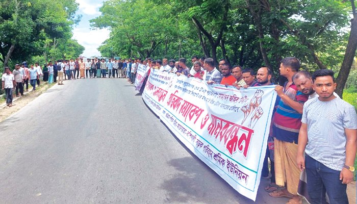 এসময় শ্রমিক ইউনিয়ন নেতা মো একরামের সভাপতিত্বে যুগ্ম সাধারণ সম্পাদক টিপুর সঞ্চালনায় অন্যান্যদের মধ্যে উপস্থিত ছিলেন আইয়ুব আলী, পেয়ার মোহাম্মদ, মঈনুদ্দিন লিপু, মোঃ হোসেন, জালাল উদ্দিন, রাসেল হাবীব, মোঃ ইউনুচ, মোরশেদ, জাহেদ, কুদ্দুস, আক্তার, সাইফুর রহমান,মোঃ ছৈয়দ, জাকির, মোজাফ্ফর, মোঃ টিপু, নাজিম উদ্দিন, ফারুক, মোঃ কাশেম,আরিফ প্রমুখ।