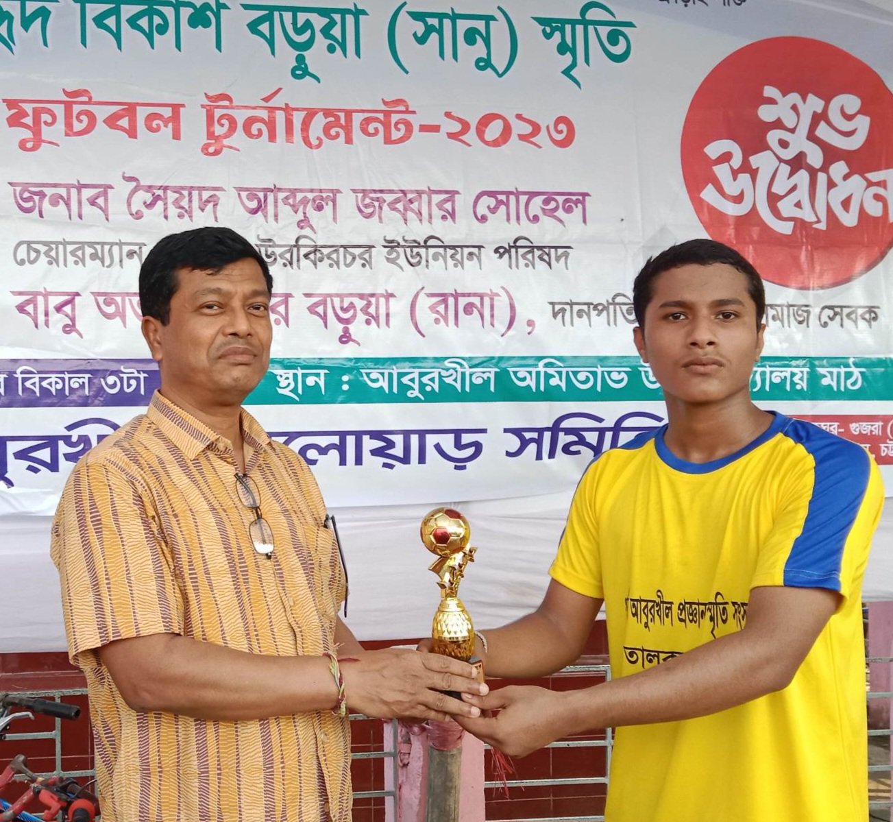খেলা শেষে সেরা খেলোয়াড় বিজিত দলের সনজয় বড়ুয়া’র হাতে পুরস্কার তুলে দেন আবুরখীলের বিশিষ্ট ব্যবসায়ী ও ম্যাচের উদ্বোধক দেবাশীষ বড়ুয়া।  একই মাঠে অনুষ্ঠিত দিনের ২য় খেলায় উত্তর ঢাকাখালী যুবগোষ্ঠী ও তথাগত সংসদ ২-১ গোলে বড়িয়াখালী তরুণ সংঘকে পরাজিত করেছে।  খেলা শেষে সেরা খেলোয়াড় জয়ী দলের অনীক বড়ুয়ার হাতে পুরস্কার তুলে দেন আবুরখীলের সাবেক কৃতি ফুটবলার দীনেশ বড়ুয়া।