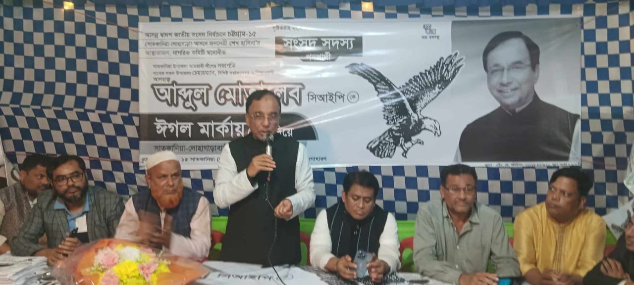 চট্টগ্রাম-১৫ (সাতকানিয়া-লোহাগাড়া) আসনের স্বতন্ত্র সংসদ সদস্য পদপ্রার্থী ও সাতকানিয়া উপজেলা আওয়ামী লীগের সভাপতি এম.এ মোতালেব সিআইপি বলেছেন, সাতকানিয়া-লোহাগাড়ার অন্তত ১০ হাজারের মত লোক আমার প্রতিষ্ঠিত প্রতিষ্ঠানে চাকরিতে নিয়োজিত রয়েছেন। আগামী ৭ জানুয়ারী আমার প্রতীক ঈগল মার্কায় ভোট দিয়ে সংসদ সদস্য নির্বাচিত করলে কর্মসংস্থানের দুয়ার খুলে দেব এবং এর মাধ্যমে তরুণ ও যুবকদের বেকার সমস্যা সমাধান করব।