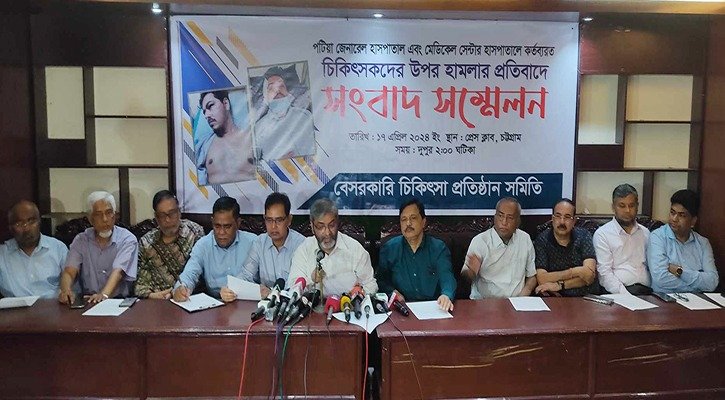 দুই চিকিৎসকের ওপর হামলায় জড়িতদের ২৪ ঘণ্টার মধ্যে গ্রেপ্তার করা না হলে সর্বাত্মক কর্মবিরতি পালনের আল্টিমেটাম দিয়েছে বেসরকারি চিকিৎসা প্রতিষ্ঠান সমিতি।