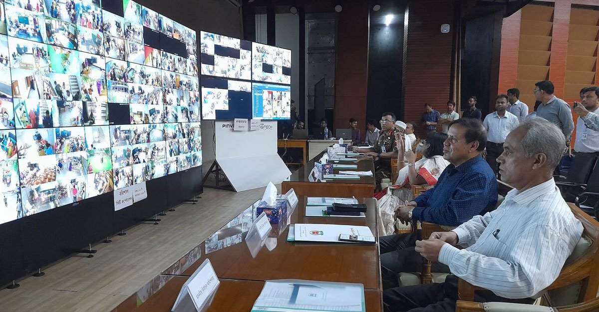 সকালে ভোটগ্রহণ শুরুর কিছু সময় পর থেকেই নির্বাচন কমিশনাররা আগারগাঁওয়ে কমিশন ভবনে স্থাপিত মনিটরিং সেলে বসে ভোটগ্রহণ দেখছেন। সঙ্গে অন্যান্য কর্মকর্তারাও আছেন।