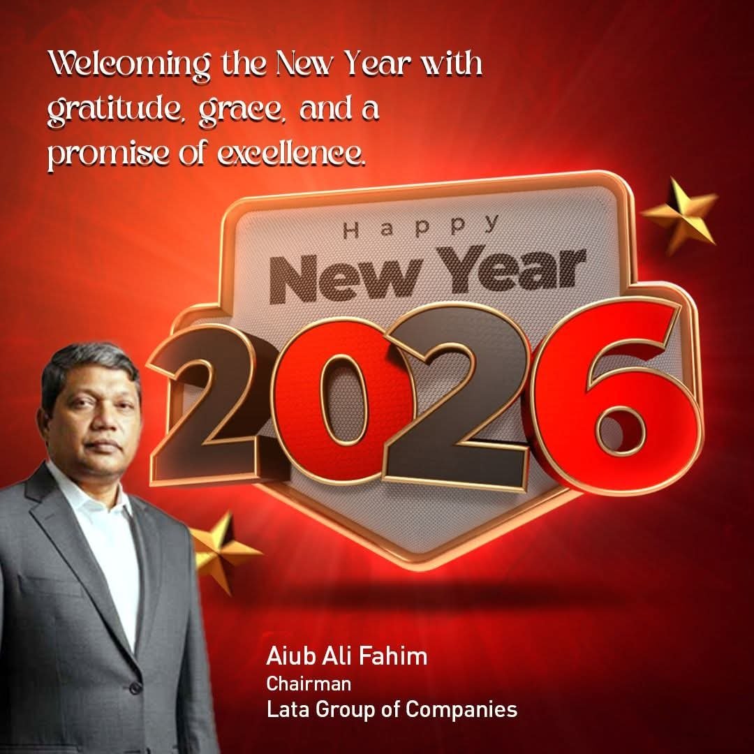 দেশবাসীকে ২০২৬ সালের নতুন বছরের আগাম শুভেচ্ছা জানিয়েছেন লতা গ্রুপ অব কোম্পানির চেয়ারম্যান আইয়ুব আলী ফাহিম