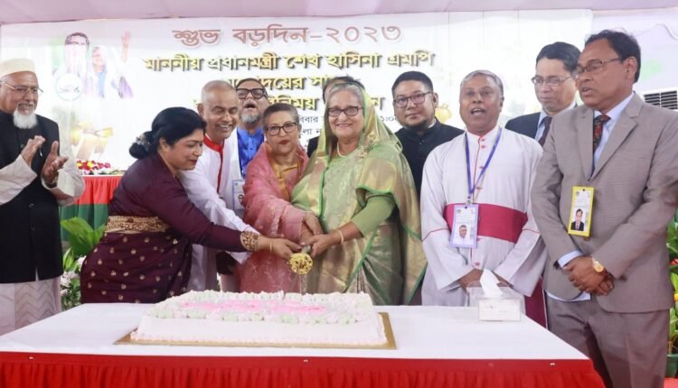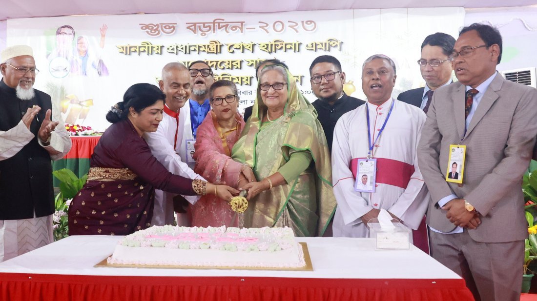 সরকার ধর্ম-বর্ণ নির্বিশেষে সবার জন্য কাজ করছে উল্লেখ করে প্রধানমন্ত্রী শেখ হাসিনা বলেছেন, বিশেষ ফায়দা নিতে ধর্মের নামে এদেশে কেউ রাজনীতি করতে পারবে না। রবিবার (২৪ ডিসেম্বর) দুপুরে গণভবন প্রাঙ্গণে খ্রিস্টান ধর্মাবলম্বীদের সঙ্গে বড়দিনের শুভেচ্ছা বিনিময়ের সময় এ কথা বলেন প্রধানমন্ত্রী শেখ হাসিনা। বাংলাদেশের মাটি সবার জন্য উল্লেখ করে তিনি বলেন, ধর্ম, বর্ণ নির্বিশেষে সবাই এক হয়ে যুদ্ধ করেছে। সবার রক্ত মিশে গেছে এই মাটিতে। ধর্মীয় সংঘাত আমরা চাই না। ধর্মীয় রীতি পালনে কেউ বাধা দিক সেটাও আমরা চাই না। এ দেশে স্বাধীনভাবে সব ধর্মের মানুষ নিজ নিজ ধর্ম পালন করবে। ধর্মকে ব্যবহার করে কোনও রাজনীতি করতে দেওয়া হবে না। বিএনপি-জামায়াতের সমালোচনা করে শেখ হাসিনা বলেন, মানুষ পুড়িয়ে কী অর্জন করছে তারা এটাই প্রশ্ন। আমরা চাই সংঘাত বন্ধ হোক। মানুষ পুড়িয়ে নির্বাচন বন্ধ করে নির্বাচনি ফায়দা করবে এটা এদেশে চলবে না। মানুষ পুড়িয়ে নির্বাচন বন্ধ করা যাবে না। দেশের কিছু মানুষ রাজনৈতিক উদ্দেশ্য হাসিলের জন্য নাশকতা করছে। আন্দোলনের নামে মানুষ মেরে বিএনপি নির্বাচন বন্ধের ফায়দা লুটবে, সেটা মেনে নেওয়া হবে না। শেখ হাসিনা বলেন, আমরা কাজ করি এদেশের মানুষের জন্য। আমরা মানবতার কথা বলি। যিশুখৃস্ট মানবতার কথা বলেছেন। মহানবী সা. মানবতার কথা বলেছেন। আমরাও ধর্ম বর্ণ নির্বিশেষে সবার কল্যাণে কাজ করছি। সব ধর্মের মানুষ একসঙ্গে বসবাস করছে এই দেশে হাজার বছর ধরে। আমরাও এই নীতি মেনে চলছে। ধর্ম যার যা উৎসব সবার। তিনি আরও বলেন, ধর্মীয় সংঘাত আমরা চাই না। ধর্মীয় রীতি পালনে কেউ বাধা দিক সেটাও আমরা চাই না। আমরা প্রত্যেকে আনন্দ ভাগাভাগি করছি। এটাই সব থেকে আনন্দের। আনন্দ, সুখ দুঃখ ভাগাভাগি করে নেই। গণভবনে আয়োজিত অনুষ্ঠান শেষে কেক কেটে বড়দিন উদযাপনের উদ্বোধন করেন প্রধানমন্ত্রী শেখ হাসিনা ও তার বোন শেখ রেহানাসহ অন্যান্যরা।