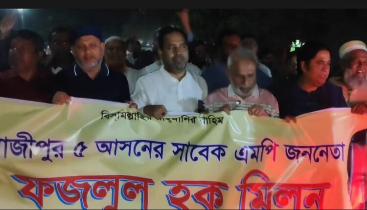 দলে ফিরে গাজীপুর ৫ আসনের ধানের শীষের প্রার্থী এ কে এম ফজলুল হক মিলনের পক্ষে ভোট চাইলেন গাজীপুর সিটি কর্পোরেশনের ৪০ নং ওয়ার্ড এর সাবেক কাউন্সিলর এড নজরুল ইসলাম খান বিকি।