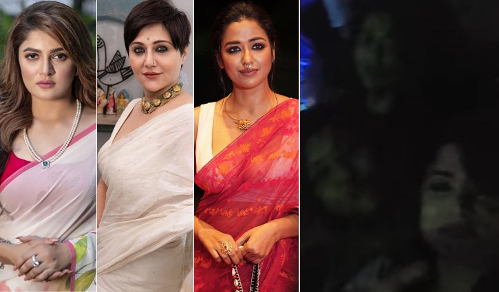 বাহারি আলোর ঝলকানিতে মাঝে মাঝে ঝলমল করছে শ্রাবন্তী চ্যাটার্জি, স্বস্তিকা মুখার্জি ও সোহিনী সরকারের মুখ। ব্যাকগ্রাউন্ডে বাজছে ইংরেজি ভাষার গান। এ গানের তালে চুটিয়ে নাচছেন এই তিন তারকা। এক পর্যায়ে শ্রাবন্তীকে চুমু খান স্বস্তিকা। সোশ্যাল মিডিয়ায় ছড়িয়ে পড়া একটি ভিডিও ক্লিপে এমন দৃশ্য দেখা যায়। তিন তারকাকে একসঙ্গে দেখে মুগ্ধতা প্রকাশ করছেন তাদের ভক্ত-অনুরাগীরা।