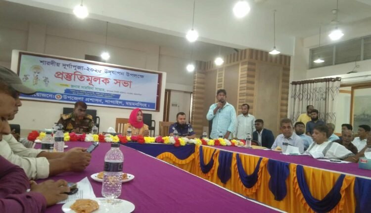 নান্দাইল উপজেলায় শারদীয় দুর্গাপূজা-২০২৫ উদযাপন উপলক্ষ্যে পূজা মন্ডপসমূহের নিরাপত্তা, আইন-শৃঙ্খলা নিয়ন্ত্রণ ও প্রাসঙ্গিক বিষয়ে প্রস্তুতিমূলক সভা অনুষ্ঠিত হয়েছে।(১৭ সেপ্টেম্বর) বুধবার সকাল ১১ টায় নান্দাইল উপজেলা প্রশাসনের আয়োজনে উপজেলা পরিষদ মিলনায়তনে এ সভা অনুষ্ঠিত হয়।