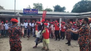 র্যালী ও আলোচনা শেষে দুর্যোগে করণীয় বিভিন্ন বিষয়ে মহড়া প্রদর্শন করেন সিভিল ডিফেন্সের কর্মীরা।