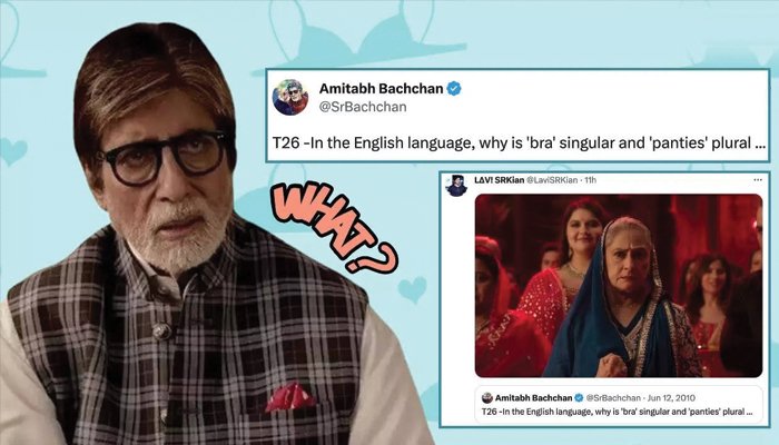টুইটে লেখা, ‘ইংরেজি ভাষায় ব্রা কেন একবচন এবং প্যান্টিস কেন বহুবচন’। এতে ক্ষুব্ধ নেটিজেনরা লিখলেন, খুব ভালো বচ্চন সাব, এ প্রশ্নটা পরের ‘কৌন বনেগা ক্রোড়পতি’তে করুন।