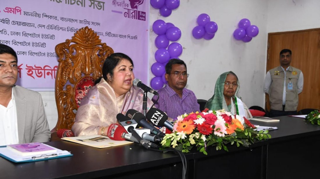 নারী অধিকার প্রতিষ্ঠার সংগ্রাম দীর্ঘদিনের উল্লেখ করে জাতীয় সংসদের স্পিকার ড. শিরীন শারমিন চৌধুরী বলেছেন, ‘নারীরা তাদের দক্ষতা, যোগ্যতা ও কর্মের মাধ্যমে নিজেদের প্রমাণ করেছে।’ নারীদের সম-অধিকার ও সমসুযোগ নিশ্চিতে বিনিয়োগ করতে হবে বলেও উল্লেখ করেন তিনি। শনিবার (৩০ মার্চ) ঢাকা রিপোর্টার্স ইউনিটির নসরুল হামিদ মিলনায়তনে ‘আন্তর্জাতিক নারী দিবস-২০২৪’ উদযাপন উপলক্ষে সংগঠনটির বিশেষ সংকলন ‘কণ্ঠস্বর’ এর মোড়ক উন্মোচন ও আলোচনা সভায় প্রধান অতিথি হিসেবে উপস্থিত হয়ে এসব কথা বলেন। ঢাকা রিপোর্টার্স ইউনিটির সভাপতি সৈয়দ শুকুর আলী শুভ’র সভাপতিত্বে এবং নারী বিষয়ক সম্পাদক মাহমুদা ডলির সঞ্চালনায় স্বাগত বক্তব্য দেন সাধারণ সম্পাদক মহি উদ্দিন। সম্মানিত অতিথি হিসেবে সিনিয়র সাংবাদিক মাহমুদা চৌধুরী, সিনিয়র সাংবাদিক শাহনাজ বেগম, সিনিয়র সাংবাদিক শফিকুল করিম সাবু এবং সাবেক নারী বিষয়ক সম্পাদক সুমি খান বক্তব্য প্রদান করেন। স্পিকার ড. শিরীন শারমিন চৌধুরী বলেন, নারীরা আজ মহাশূন্যে যাচ্ছে, হিমালয় জয় করছে, কিন্তু তারপরও নারীদের সংগ্রাম থেমে নেই। তারা ঘরে-বাইরে সংগ্রাম মোকাবিলা করে এগিয়ে চলছে। বাংলাদেশে সর্বজনীন প্রাথমিক শিক্ষা নিশ্চিত হয়েছে উল্লেখ করে তিনি বলেন, ‘সাধারণ ঘরের মেয়েরাও আজ উচ্চতর শিক্ষায় শিক্ষিত। প্রায় এক কোটি নারী শিক্ষার্থীকে শিক্ষা বৃত্তি প্রদান করা হচ্ছে।’ প্রধানমন্ত্রী শেখ হাসিনা গত ১৫ বছরে নারীদের অগ্রগতিতে বিপ্লব ঘটিয়েছেন বলে মন্তব্য করেন স্পিকার শিরীন শারমিন। তিনি বলেন, ‘তৃণমূল পর্যায়ের নারীরাও আজ স্বাবলম্বী এবং নারী উদ্যোক্তাদের সংখ্যাও উল্লেখযোগ্যভাবে বৃদ্ধি পেয়েছে। উদ্যোক্তাদের বিনা জামানতে ঋণ প্রদান করলে এবং তাদের পণ্য দেশীয় ও বিদেশি বাজারে সরবরাহের ব্যবস্থা নিলে তারা দেশের অর্থনৈতিক উন্নয়নে গুরুত্বপূর্ণ ভূমিকা রাখতে সক্ষম হবে।’ স্পিকার বলেন, ‘বাংলাদেশের বাজেট লিঙ্গ সংবেদনশীল বাজেট। প্রতিটি মন্ত্রণালয়ে মহিলাদের জন্য বাজেট বরাদ্দ রয়েছে। লিঙ্গ বৈষম্যের কারণে নারী যেন পিছিয়ে না যায় সে বিষয়ে সরকার অত্যন্ত আন্তরিক।’ এসময় ডেইলি অবজারভারের বিশেষ প্রতিনিধি শাহনাজ বেগম এবং ডিআরইউ এর সাবেক সহসভাপতি মাহমুদা চৌধুরীকে বিশিষ্ট নারী সাংবাদিক হিসেবে সম্মাননা জানানো হয়। এসময় স্পিকার ঢাকা রিপোর্টার্স ইউনিটিকে নারী দিবসের অনুষ্ঠান পালনের জন্য ধন্যবাদ জানান। ঢাকা রিপোর্টার্স ইউনিটির যুগ্ম সম্পাদক মো. মিজানুর রহমান, অর্থ সম্পাদক মো. জাকির হুসাইন, সাংগঠনিক সম্পাদক খালিদ সাইফুল্লাহসহ কার্যনির্বাহী কমিটির সদস্যরা, প্রথিতযশা সাংবাদিকরা, আমন্ত্রিত অতিথিরা, গণ্যমান্য ব্যক্তিরা এবং গণমাধ্যমকর্ম