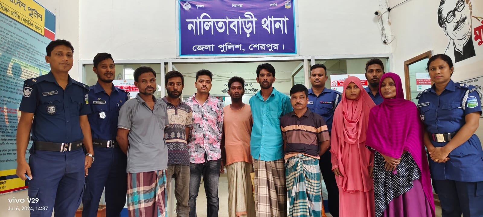 শনিবার (৬ জুলাই )দুপুরে পৃথক অভিযানে গ্রেফতারকৃত ৫ জনকে শেরপুর আদালতে প্রেরণ করেছে পুলিশ। এর আগে শুক্রবার রাতে উপজেলার মধুটিলা ইকোপার্ক এলাকা থেকে ৪০০ পিস ইয়াবাসহ মোঃ ইসমাইল হোসেন নামে একজন ও একই রাতে নন্নী এলাকা থেকে ১০০ গ্রাম গাজাসহ ফরিদুল ইসলাম নামের একজন এবং একই দিনে বিকাল ৪ঃ৩০ ঘটিকায় বাজার ছিটপাড়া এলাকা থেকে জুয়া খেলা অবস্থায় সেলিম,মান্নান ও দুলাল নামের তিনজনকে গ্রেফতার করা হয়। গ্রেফতারকৃত মো. ইসমাইল হোসেন কুমিল্লা জেলার বুড়িচং থানার লড়িবাগ মধ্যপাড়া গ্রামের আ: কাদিরের পুত্র ও ১০০ গ্রাম গাজাসহ গ্রেফতারকৃত মোঃ ফরিদুল ইসলাম  নালিতাবাড়ী উপজেলার নন্নী বাজুপাড়া এলাকার মোঃ আক্কাস আলী’র পুত্র। অন্যদিকে জুয়া খেলা অবস্থায় বাজার ছিটপাড়া এলাকার মৃত আলাল উদ্দীনের পুত্র সেলিম, মৃত শাহজাহান বাদশাহ’র পুত্র মান্নান ও মৃত তাহের আলীর পুত্র দুলাল।