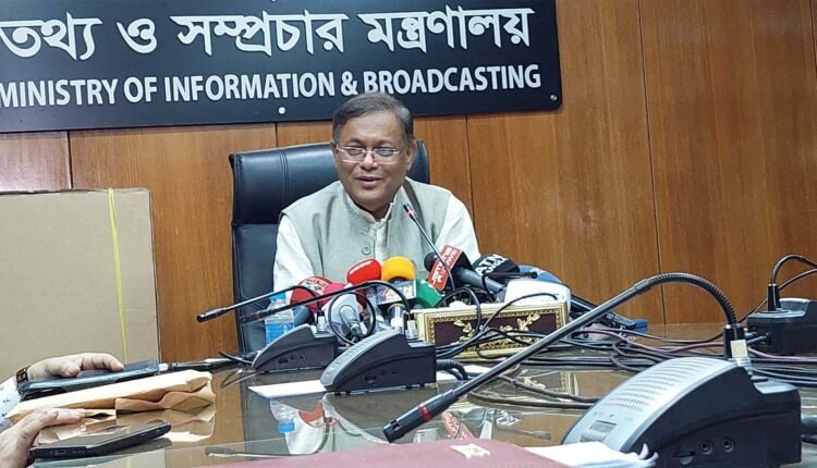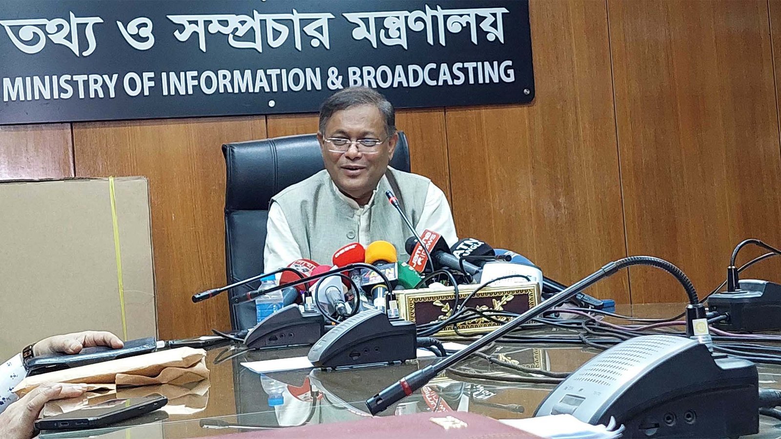জাতীয় পার্টিসহ শরিক দলগুলোর নির্বাচিত হওয়ার যোগ্য ব্যক্তিদের ছাড় দেয়া হবে বলে জানিয়েছেন তথ্য ও সম্প্রচারমন্ত্রী ড. হাছান মাহমুদ। বৃহস্পতিবার (৭ ডিসেম্বর) সচিবালয়ে মন্ত্রণালয় সভাকক্ষে সাংবাদিকদের সঙ্গে সমসাময়িক বিষয়াদি নিয়ে আলাপ করছেন তথ্য ও সম্প্রচারমন্ত্রী ড. হাছান মাহমুদ। ছবি: সময় সংবাদ