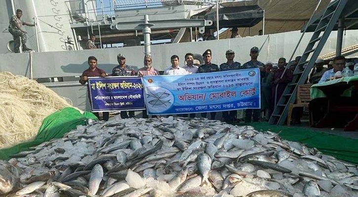 নিষেধাজ্ঞা অমান্য করে ইলিশ মাছ আহরণ করায় ৪০ মণ ইলিশ জব্দ করেছেন ভ্রাম্যমাণ আদালত। পরে মাছগুলো ১১টি এতিমখানা ও ১০টি সরকারি শিশু পরিবারের মাঝে বিতরণ করা হয়।