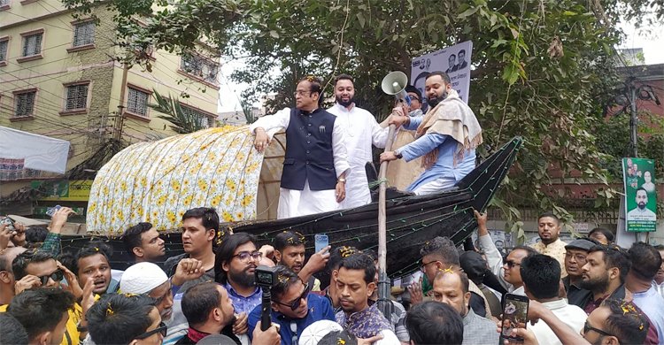 ঢাকা-৭ আসনের নির্বাচনী প্রচারণায় নৌকায় চড়েছেন আওয়ামী লীগ মনোনীত প্রার্থী সোলায়মান সেলিম ও তার বাবা সাবেক সংসদ সদস্য হাজী সেলিম। শনিবার (২৩ ডিসেম্বর) বিকেল সাড়ে ৩টায় রাজধানীর পুরাতন জেলখানার মোড় থেকে নির্বাচনী প্রচারণা শুরু করেন সোলায়মান সেলিম। প্রচারণা শুরুর আগে জেলখানার মোড়ে ৩১ নম্বর ওয়ার্ডের নেতাকর্মীদের তৈরি নৌকার ওপরে ওঠেন সাবেক সংসদ সদস্য হাজী সেলিম ও আগামী দ্বাদশ নির্বাচনে সরকার দলীয় মনোনীত প্রার্থী সোলায়মান সেলিম। এ সময় সোলায়মান সেলিম বলেন, আমার নির্বাচনী এলাকাটি ব্যবসায়িক এলাকা। বঙ্গবন্ধু শেখ মুজিবুর রহমান মারা যাওয়ার পরে সাবেক সংসদ সদস্য হাজী সেলিম আমার বাবা ১৯৯৬ সাল থেকে নেত্রীকে এই এলাকা থেকে তিনবার নৌকায় জয়যুক্ত করেছেন। ইনশাআল্লাহ আমিও সেই ধারাবাহিকতা অব্যাহত রাখব। এবারের নির্বাচনে দেশে ভোটার সংখ্যা ১১ কোটি ৯৬ লাখ ৯১ হাজার ৬৩৩ জন। এদের মধ্যে পুরুষ ভোটার ৬ কোটি ৭ লাখ ৭১ হাজার ৫৭৯ জন এবং নারী ভোটার ৫ কোটি ৮৯ লাখ ১৯ হাজার ২০২ জন। আর তৃতীয় লিঙ্গের ভোটার রয়েছেন ৮৫২ জন। ইসি ঘোষিত তফসিল অনুযায়ী, নির্বাচনে অংশগ্রহণ করা প্রার্থীদের প্রতীক বরাদ্দের পর এখন চলছে প্রচারণা। শেষ হবে আগামী ৫ জানুয়ারি। একদিন বিরতি দিয়ে ৭ জানুয়ারি সকাল ৮টা থেকে বিকেল ৪টা পর্যন্ত ব্যালট পেপারের মাধ্যমে চলবে ভোটগ্রহণ।