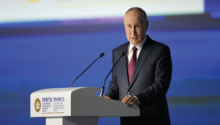 সেন্ট পিটার্সবার্গে আন্তর্জাতিক অর্থনৈতিক ফোরামে শুক্রবার (১৬ জুন) যোগ দিয়ে পুতিন বলেছেন, ‘ইউক্রেনে যুদ্ধ দীর্ঘায়িত করছে ন্যাটো। আমরা এখানে কী নিয়ে আলোচনা করছি? ইউক্রেনে ভারি অস্ত্র ঢুকছে। তারা এখনও ইউক্রেনকে যুদ্ধবিমান দেওয়ার চিন্তা-ভাবনা করছে। ’