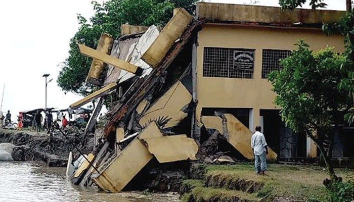 মানিকগঞ্জের হরিরামপুর উপজেলায় পদ্মা নদীর তীব্র ভাঙনে ধূলসড়া ইউনিয়নে ৪৬ নম্বর চর মকুন্দিয়া সরকারি প্রাথমিক বিদ্যালয়ের কিছু অংশ পদ্মানদীতে ভেঙে পড়েছে।