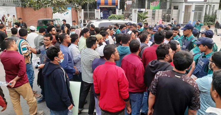 ৪৩তম বিসিএসে নন-ক্যাডার পদ বাড়ানোর দাবিতে আন্দোলনরত চাকরিপ্রার্থীদের বিক্ষোভের মুখে পড়েছেন সরকারি কর্ম কমিশনের (পিএসসি) চেয়ারম্যান সোহরাব হোসাইন। প্রার্থীরা তার গাড়ি আটকানোর চেষ্টা করলে পুলিশ তাদের নিবৃত্ত করে। একপর্যায়ে পুলিশ পাহারায় পিএসসি থেকে বেরিয়ে যান তিনি। রোববার (২৪ ডিসেম্বর) বিকেল ৪টা ৪০ মিনিটের দিকে রাজধানীর আগারগাঁওয়ে পিএসসির সামনে এ ঘটনা ঘটে। পুলিশের সহায়তায় চেয়ারম্যান বেরিয়ে যাওয়ার পর ৪টা ৫০ মিনিটের দিকে সেখান থেকে কর্মসূচি শেষ করে চলে যান আন্দোলনরতরাও।চাকরিপ্রার্থীরা জানান, তারা শান্তিপূর্ণভাবে কর্মসূচি করছেন। নন-ক্যাডারের বিজ্ঞপ্তি দিয়ে যে পছন্দক্রম নেওয়া হয়েছে, তা বাতিল করে পুনরায় বিজ্ঞপ্তি এবং নন-ক্যাডার পদ সংখ্যা বাড়ানোর দাবি জানিয়ে আসছেন তারা। শেষপর্যন্ত শান্তিপূর্ণ আন্দোলন করেই তারা দাবি আদায় করতে চান। এর আগে সকাল ১০টা থেকে পিএসসির সামনে অবস্থান কর্মসূচি শুরু করেন তারা। কর্মসূচিতে অংশ নেওয়া আন্দোলনকারীদের অনেকে গলায় মুলা ঝুলিয়ে প্রতীকী প্রতিবাদ জানান। অনেকে কাফনের কাপড় পরে মুখে কালো কাপড় বেঁধে দাবি আদায়ে পিএসসির সামনে অবস্থান নেন। সকালের দিকে আন্দোলনকারীরা পিএসসির ফটকের কাছাকাছি যাওয়ার চেষ্টা করলে পুলিশ তাদের সরিয়ে দেয়। পরে তারা পিএসসির সামনের রাস্তায় দুই ফটকের সম্মুখে অবস্থান নেন। অনেক প্রার্থীর হাতে জাতির পিতা বঙ্গবন্ধু শেখ মুজিবুর রহমান ও প্রধানমন্ত্রী শেখ হাসিনার ছবি দেখা গেছে। ‘বঙ্গবন্ধুর বাংলায় বৈষম্যের ঠাঁই নেই’ স্লোগানও দেওয়া হয়। তাদের দাবি, নন-ক্যাডারের বিজ্ঞপ্তি ও পছন্দক্রম বাতিল, ক্যাডার ও নন-ক্যাডারের ফল পৃথকভাবে প্রকাশ এবং আগের বিসিএসগুলোর সঙ্গে সামঞ্জস্য রেখে পদ বাড়াতে হবে। গত ২১ ডিসেম্বর পিএসসির সামনে কাফনের কাপড় পরে অবস্থান নেন আন্দোলনরতরা। তারা পিএসসির সামনের দুটি ফটকে অবস্থান নেওয়ায় অফিস শেষে কর্মকর্তারা পেছনের ফটক দিয়ে বেরিয়ে যান।চাকরিপ্রার্থীরা বলেন, ৪৩তম বিসিএসে হঠাৎ ক্যাডার ও নন-ক্যাডারের ফল একসঙ্গে দিতে তড়িঘড়ি করে খুবই অল্পসংখ্যক পদে নন-ক্যাডারের বিজ্ঞপ্তি দিয়েছে পিএসসি। সেই পদগুলোতে পছন্দক্রম নিয়েছে। এতে লিখিত পরীক্ষা দিয়ে উত্তীর্ণ অসংখ্য প্রার্থী মৌখিক পরীক্ষা দিয়েও নন-ক্যাডারের চাকরি পাবেন না। এটা ৪৩তম ব্যাচের সঙ্গে স্পষ্টই বৈষম্য। এ প্রক্রিয়া বন্ধ করে পদ বাড়িয়ে নতুন বিজ্ঞপ্তি প্রকাশ করতে হবে। জানা গেছে, ৪৩তম বিসিএসে ক্যাডার ও নন-ক্যাডারে একসঙ্গে চূড়ান্ত ফল প্রকাশের উদ্যোগ নিয়েছে পিএসসি। ক্যাডার পদের ফল প্রস্তুতের কাজ চলমান। পাশাপাশি নন-ক্যাডারে শূন্য পদ উল্লেখ করে বিজ্ঞপ্তি প্রকাশ করা হয়েছে।