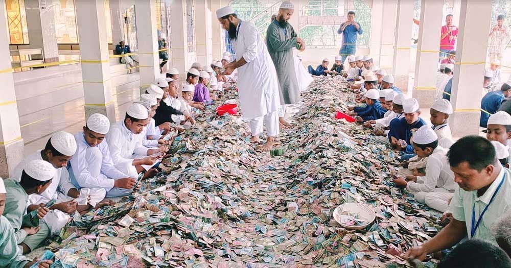 পাগলা মসজিদের দানবাক্সে এবার ২৭ বস্তা টাকা, গণনা চলছে