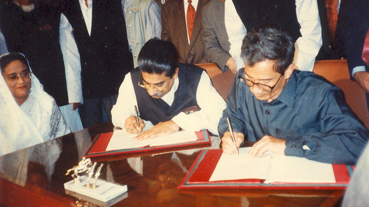১৯৯৭ সালের এই দিনে সরকারের পক্ষে তৎকালীন চিফ হুইপ আবুল হাসনাত আবদুল্লার সঙ্গে শান্তিচুক্তিতে স্বাক্ষর করেছিলেন পার্বত্য চট্টগ্রাম জনসংহতি সমিতির সভাপতি জ্যোতিরিন্দ্র বোধিপ্রিয় লারমা ওরফে সন্তু লারমা।