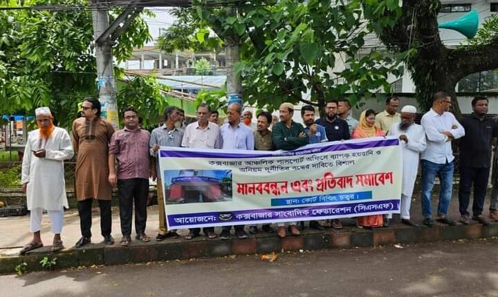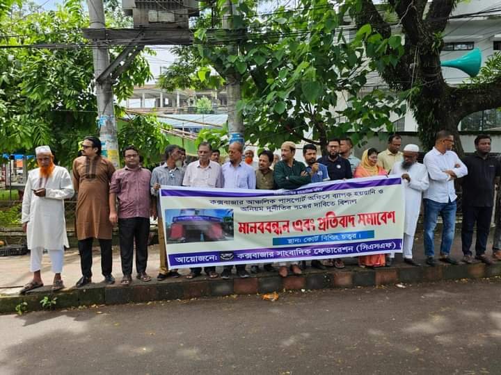 কক্সবাজার আঞ্চলিক পাসপোর্ট অফিসে সীমাহীন দুর্নীতি, হয়রানী এবং দালালের দৌরাত্ম্য বন্ধের দাবিতে বিশাল মানববন্ধন ও প্রতিবাদ সমাবেশ করেছে কক্সবাজার সাংবাদিক ফেডারেশন (সিএসএফ)।
