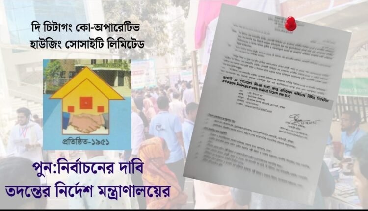 অনিয়ম, দুর্নীতি ও পক্ষপাতের অভিযোগে গত ২২ ফেব্রুয়ারি তারিখে অনুষ্ঠতব্য দি চিটাগাং কো-অপারেটিভ হাউজিং সোসাইটি লিমিটেডের ব্যবস্থাপনা কমিটির নির্বাচন-২০২৫ এ সহ-সভাপতি পদসহ নির্বাচনী ফলাফল তদন্তের নির্দেশ দিয়েছে স্থানীয় সরকার, পল্লী উন্নয়ন ও সমবায় মন্ত্রাণালয়। একই সঙ্গে ঐ নির্বাচনের ফলাফল তদন্তপূর্বক ব্যবস্থা আগামী ১৫ (পনেরো) দিনের মধ্যে তদন্ত প্রতিবেদন দাখিল করতে তদন্ত কর্মকর্তা নিয়োগ দিয়েছে মন্ত্রাণালয়।