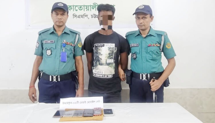 চট্টগ্রাম নগরীর কোতোয়ালী থানার পুরাতন রেলস্টেশন সংলগ্ন এলাকা থেকে ছয়টি চোরাই মোবাইল সেটসহ মো. পারভেজ (২৭) নামে চোর চক্রের এক সদস্যকে গ্রেপ্তার করেছে থানা পুলিশ।