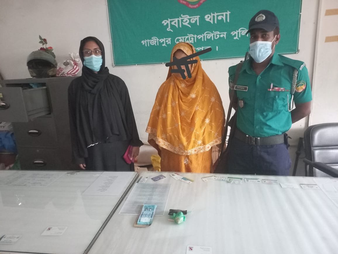 গাজীপুর মহানগরের পূবাইল থানা পুলিশ মাদকবিরোধী বিশেষ অভিযানে ১০৫ পিস ইয়াবা ট্যাবলেট ও মাদক বিক্রির নগদ ২ হাজার ৩০০ টাকা উদ্ধার করেছে। এ ঘটনায় নাসরিন আক্তার (৩৫) নামে এক নারীকে গ্রেপ্তার করা হয়েছে। মঙ্গলবার (৩০ সেপ্টেম্বর ২০২৫) সকাল সাড়ে ১০টার দিকে গোপন সংবাদের ভিত্তিতে এসআই (নিরস্ত্র) মোঃ রফিকুল ইসলাম ও এএসআই গোলাম সারোয়ারের নেতৃত্বে সঙ্গীয় ফোর্স পূবাইল থানাধীন কুদাব এলাকায় অভিযান চালায়। এসময় নারী পুলিশের সহায়তায় কুদাব গ্রামের বাসিন্দা রাশেদুল আলমের স্ত্রী নাসরিন আক্তারকে তার নিজ বাসা থেকে গ্রেপ্তার করা হয়। পুলিশ জানায়, অভিযানের সময় আসামীর হেফাজতে থাকা ওয়ারড্রপের ড্রয়ার থেকে ১০৫ পিস ইয়াবা ট্যাবলেট এবং বিক্রির নগদ ২ হাজার ৩০০ টাকা জব্দ করা হয়। গ্রেপ্তারকৃত নাসরিন আক্তারকে প্রাথমিক জিজ্ঞাসাবাদ শেষে মাদকদ্রব্য নিয়ন্ত্রণ আইনে নিয়মিত মামলা রুজু করে বিজ্ঞ আদালতে প্রেরণ করা হয়েছে। এ ঘটনায় আরও একজন আসামি পলাতক রয়েছে বলে জানিয়েছে পুলিশ।