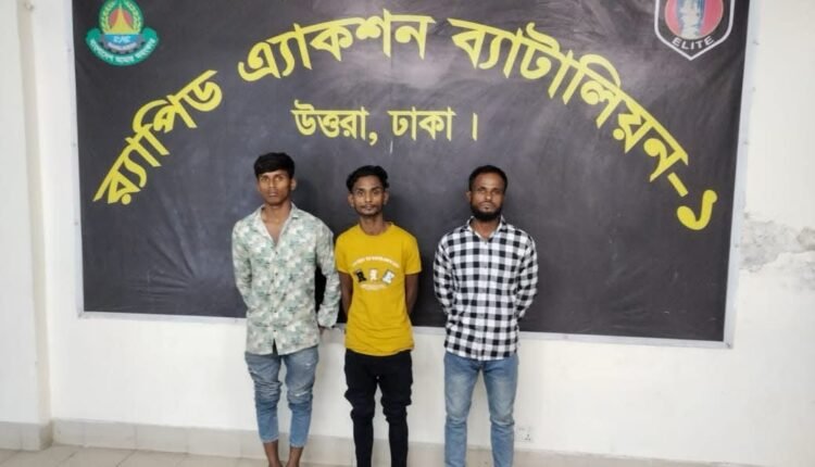 গ্রেফতারকৃতরা হলেন, নড়াইল জেলার কালিয়া থানার সুমেরখোলা গ্রামের মৃত মোঃ আঃ মজিদের ছেলে মোঃ সোহাগ শেখ (৩৯), নড়াইল জেলার কালিয়া থানার নগগ্রাম গ্রামের মোঃ মিজানুর বিশ্বাসের ছেলে মোঃ আশিক বিশ্বাস ওরফে আকাশ (২১) এবং হবিগঞ্জ জেলার মাধবপুর থানার ইটাখোলা গ্রামের মোঃ শফিক মিয়ার ছেলে মোঃ সাগর মিয়া (২০)।
