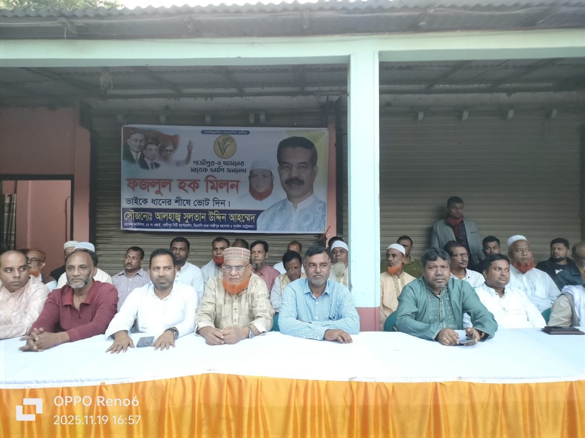 গাজীপুর মহানগরের পূবাইল থানাধীন ৪২ নং ওয়ার্ডের তালটিয়া এলাকায় গাজীপুর জেলা বিএনপির আহ্বায়ক গাজীপুর ৫আসনের ধানের শীষ প্রতীক এ কেএম ফজলুল হক মিলন কে বিপুল ভোটে বিজয়ী করার লক্ষ্যে ৪২ নং ওয়ার্ডের সাবেক কাউন্সিলর বিএনপি নেতা সুলতান উদ্দিন আহম্মেদ এর আয়োজনে আলোচনা সভা ও দোয়া মাহফিল বুধবার (১৯নভেম্বর) সন্ধ্যায় অনুষ্ঠিত হয়েছে।এ সময় আরও উপস্থিত ছিলেন,পূবাইল থানা বিএনপির সভাপতি মনির হোসেন বকুল,পূবাইল থানা বিএনপির সিনিয়র সহ-সভাপতি দেলোয়ার হোসেন,সাবেক কাউন্সিলর, বিএনপি নেতা এ্যাডভোকেট নজরুল ইসলাম খান বিকি,পূবাইল থানা যুবদলের আহ্বায়ক মজিবুর রহমান রাজীব,পূবাইল থানা বিএনপির সিনিয়র যুগ্ন সাধারণ সম্পাদক জাকির সরকার,পূবাইল থানা বিএনপির সহ যুগ্ম সম্পাদক সিরাজুল ইসলাম,সাংগঠনিক সম্পাদক আরিফ ভূঁইয়া,পূবাইল থানা বিএনপি’র যুগ্ন সম্পাদক রাকিব মোল্লা,পূবাইল থানা বিএনপি’র সম্মানিত সদস্য সাখাওয়াত হোসেন খোকন,পূবাইল থানা মহিলা বিএনপির সভাপতি শামিমা আক্তার, মহিলা দলের সাধারণ সম্পাদক রুপালি আক্তার,আসাদ হোসেন খান বুলবুল, নাসরিন আক্তার, সীমা আক্তার, সুফিয়া আক্তার,, শিমু আক্তার,পূবাইল থানা বিএনপি’র অঙ্গ সংগঠনের নেতা কর্মীরা।
