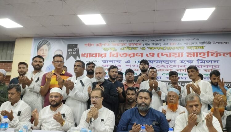 গাজীপুর মহানগরের পূবাইল থানাধীন ৪১ নং ওয়ার্ডের খিলগাঁও আপন ভুবন রিসোর্টে স্বাধীনতার ঘোষক শহীদ রাষ্ট্রপতি জিয়াউর রহমান এর ৪৪তম শাহাদাৎ বার্ষিকী উপলক্ষে আজ শনিবার বিকালে পূবাইল মেট্রো থানা বিএনপির ও সহযোগী সংগঠনের উদ্যোগে আলোচনা দোয়া মাহফিল অনুষ্ঠিত হয়েছে। উক্ত অনুষ্ঠান সঞ্চালনায় ছিলেন পূবাইল থানা বিএনপির সাধারণ সম্পাদক হারুন অর রশিদ সরকার, উক্ত অনুষ্ঠানে সভাপতিত্ব করেন পূবাইল থানা বিএনপির সভাপতি মনির হোসেন বকুল, আলোচনা সভায় প্রধান অতিথি হিসেবে উপস্থিত ছিলেন গাজীপুর জেলা বিএনপির সভাপতি, সাবেক এমপি এ, কে, এম ফজলুল হক মিলন, বিশেষ অতিথি হিসেবে উপস্থিত ছিলেন, গাজীপুর মহানগর বিএনপির সাধারণ সম্পাদক মঞ্জুরুল করিম রনি, গাজীপুর মহানগর ছাত্রদলের সভাপতি শাহানুর রহমান শুকুর,পূবাইল থানা বিএনপির সিনিয়র সহ-সভাপতি দেলোয়ার হোসেন, পূবাইল থানা বিএনপির যুগ্ম সাধারণ সম্পাদক জাকির হোসেন সরকার ,পূবাইল থানা বিএনপির সাংগঠনিক সম্পাদক আরিফ ভুঁইয়া,পূবাইল থানা যুবদলের আহ্বায়ক মজিবুর রহমান রাজীব,পূবাইল থানা শ্রমিক দলের সভাপতি সালাম হোসেন, পূবাইল থানা মহিলা দলের সভাপতি শামীমা আক্তার,শ্রমিক দলের সাধারণ সম্পাদক আবুল হোসেন,পূবাইল থানা বিএনপির ছাএ বিষয়ক সম্পাদক হাবিবুল্লাহ হাবিব, পুবাইল থানা স্বেচ্ছাসেবক দলের সিনিয়র যুগ্ম আহ্বায়ক রুবেল আহমেদ জীবন, প্রমুখ