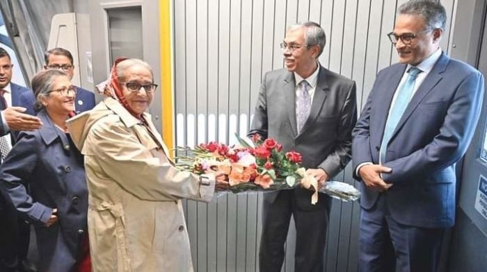 এর আগে একই দিনে প্রধানমন্ত্রী ও তার সফরসঙ্গীদের বহনকারী বিমান বাংলাদেশ এয়ারলাইন্সের একটি বিশেষ চার্টার্ড ভিভিআইপি ফ্লাইট (বিজি১৪০৩) জাপান, যুক্তরাষ্ট্র এবং যুক্তরাজ্যে তার ১৫ দিনের সরকারি সফরের প্রথম ধাপে সকাল ৭টা ৫৬ মিনিটে ঢাকার হযরত শাহজালাল আন্তর্জাতিক বিমানবন্দর থেকে রওনা হয়।
