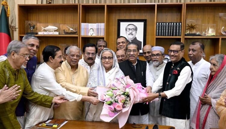 প্রধানমন্ত্রী ও আওয়ামী লীগ সভাপতি শেখ হাসিনা ঈদ-উল-আজহা উপলক্ষে দলীয় নেতাদের সঙ্গে ঈদের শুভেচ্ছা বিনিময় করেছেন। শেখ হাসিনা আজ সকালে তাঁর সরকারি বাসভবন গণভবনে আওয়ামী লীগ ও দলটির সহযোগী সংগঠনের নেতাদের সঙ্গে শুভেচ্ছা বিনিময় করেন। সকাল সাড়ে ৯টার দিকে আওয়ামী লীগের সাধারণ সম্পাদক ওবায়দুল কাদেরসহ দলের শীর্ষ নেতারা প্রধানমন্ত্রীকে ফুল দিয়ে শুভেচ্ছা জানান। এরপর ঢাকা দক্ষিণ ও উত্তর আওয়ামী লীগ, ঢাকা জেলা আওয়ামী লীগ, যুবলীগ, স্বেচ্ছাসেবক লীগ, যুব মহিলা লীগ ও ছাত্রলীগসহ আওয়ামী লীগের সহযোগী সংগঠনের নেতা-কর্মীরা প্রধানমন্ত্রী শেখ হাসিনার সঙ্গে ঈদের শুভেচ্ছা বিনিময় করেন।