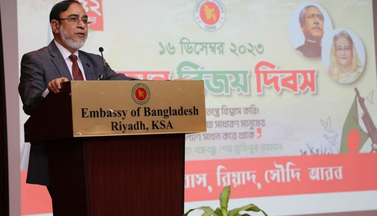 প্রবাসীদের বৈধপথে রেমিট্যান্স পাঠানোর আহ্বান রাষ্ট্রদূতের বিজয়ের চেতনায় উদ্বুদ্ধ হয়ে প্রবাসীদের বৈধপথে রেমিট্যান্স পাঠিয়ে দেশের অর্থনীতি শক্তিশালী করার আহ্বান জানিয়েছেন রাষ্ট্রদূত ড. মোহাম্মদ জাবেদ পাটোয়ারী। শনিবার (১৬ ডিসেম্বর) রিয়াদের বাংলাদেশ দূতাবাসে বিজয়ের ৫২ বছর পূর্তিতে আয়োজিত এক আলোচনা সভায় এ আহ্বান জানান রাষ্ট্রদূত।