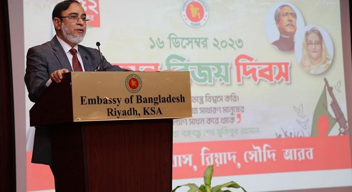 মহান বিজয় দিবস উপলক্ষ্যে সকালে দূতাবাস প্রাঙ্গণে পতাকা উত্তোলন করেন রাষ্ট্রদূত পাটোয়ারী। এ সময় দূতাবাসের কর্মকর্তা ও রিয়াদে প্রবাসী বাংলাদেশিরাও উপস্থিত ছিলেন। এরপর রাষ্ট্রদূত দূতাবাসে স্থাপিত অস্থায়ী স্মৃতিসৌধে ফুল দিয়ে শহীদদের প্রতি শ্রদ্ধা নিবেদন করেন। বাংলাদেশ কমিউনিটির বিভিন্ন সংগঠন ও ফুল দিয়ে স্মৃতিসৌধে শ্রদ্ধা নিবেদন করেন।