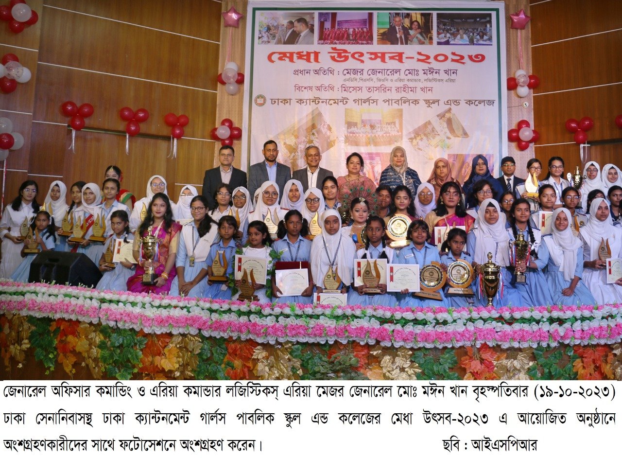 শিক্ষার্থীদেরকে আলোকিত মানুষ ও প্রকৃত দেশপ্রেমিক হওয়ার পাশাপাশি প্রযুক্তি জ্ঞান সম্পন্ন হওয়ার পরামর্শ দিয়েছেন মেজর জেনারেল মোঃ মঈন খান। ঢাকা ক্যান্টনমেন্ট গার্লস পাবলিক স্কুল এন্ড কলেজের মেধা উৎসব অনুষ্ঠানে উপস্থিত হয়ে তিনি এ পরামর্শ দেন। এসময় প্রধান অতিথি তাঁর বক্তব্যে শিক্ষার্থীদের লেখাপড়ার পাশাপাশি বিভিন্ন সহশিক্ষা কার্যক্রমে অংশগ্রহণ, চারিত্রিক বিকাশ এবং মানবিক মূল্যবোধ সম্পন্ন সুনাগরিক হিসেবে গড়ে ওঠার উপর গুরুত্বারোপ করেন তিনি। প্রতিষ্ঠানটির শিক্ষাগত দক্ষতা ও উন্নয়নের ধারা অব্যাহত রাখা এবং উত্তরোত্তর সমৃদ্ধির বিষয়েও তিনি আশাবাদ ব্যক্ত করেন। একজন শিক্ষার্থীর মুক্ত চিন্তা শক্তি, মেধা ও মনন এবং কল্পনা প্রবণতার বিকাশ ঘটানোর মধ্য দিয়ে সৃজনশীল ও আদর্শ নাগরিক হিসেবে গড়ে তোলার লক্ষ্য নিয়ে এই উৎসবের যাত্রা, যা প্রতিটি শিক্ষার্থীকে উদ্যমী ও যুগোপযুগী করে তুলবে। উক্ত প্রতিষ্ঠান কর্তৃক প্রতি বছর উৎসব ও প্রতিযোগিতামূলক মনোভাব নিয়ে এই মেধা উৎসব পালন করা হয়।