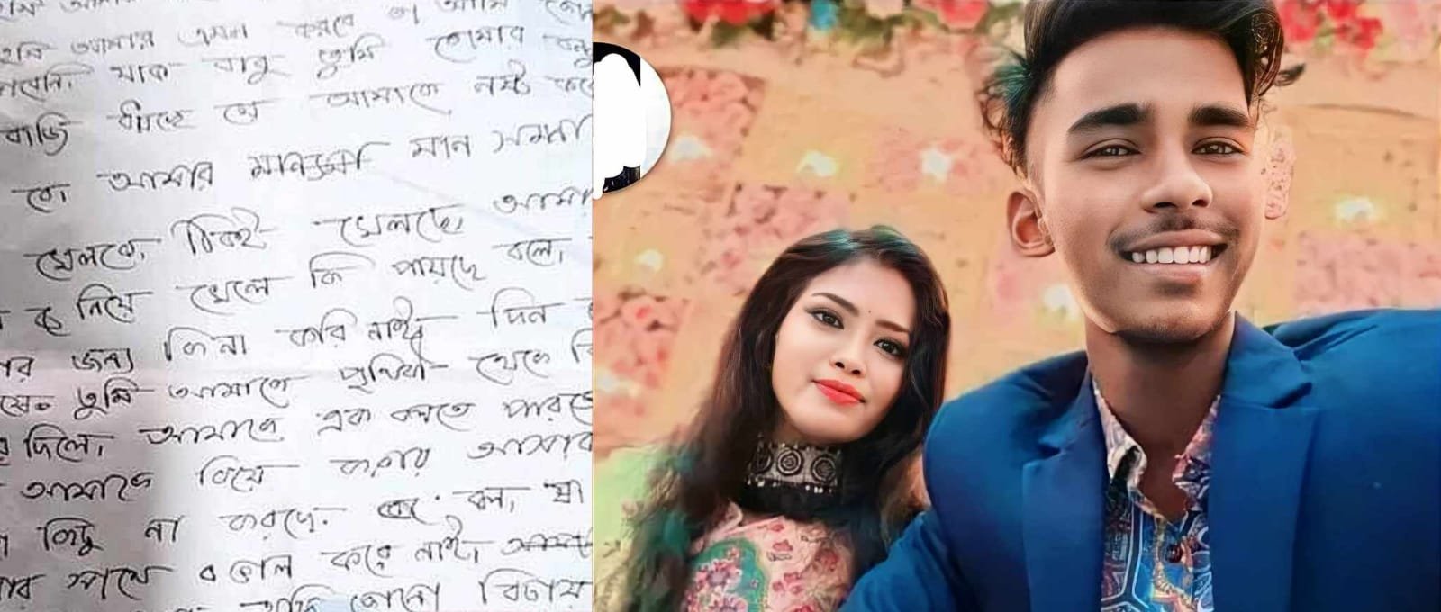 বাবু তুমি আমার সাথে যা করলে না, ভালো করলে না। তুমি আমার সাথে এমন করবে কোনদিন ভাবিনি। যাক বাবু! তুমি তোমার বন্ধুদের সাথে বাজি ধরেছো যে তুমি আমাকে নষ্ট করে দেখাবে। আমার মান সম্মান নিয়ে খেলবে! ঠিকই খেলেছ! আমার জীবন নিয়ে খেলে কী পেয়েছ বলো? আমি তোমার জন্য কিনা করি নাই, দিনশেষে তুমি আমাকে পৃথিবী থেকে বিদায় করে দিলে। আমাকে একবার বলতে পারতে। আর তুমি আমাকে বিয়ে করার আশা দিয়ে কত কিছুই না করলে, বলো বাবু? আমার সাথে ভালো করো নাই। যদি আমার মা বাবা বিচার না করে, আমার ভগবান বিচার করবে। আর আমার অভিশাপ তোমার গায়ে পড়বে। ভালো থেক আমার বাবু! বাবু আমার সাথে যা করেছে তা তার বন্ধুরা জানে। প্রথমে রনি! রনিকে ধরলে সব জানতে পারবেন, বাবু আমার সাথে কী করেছে।