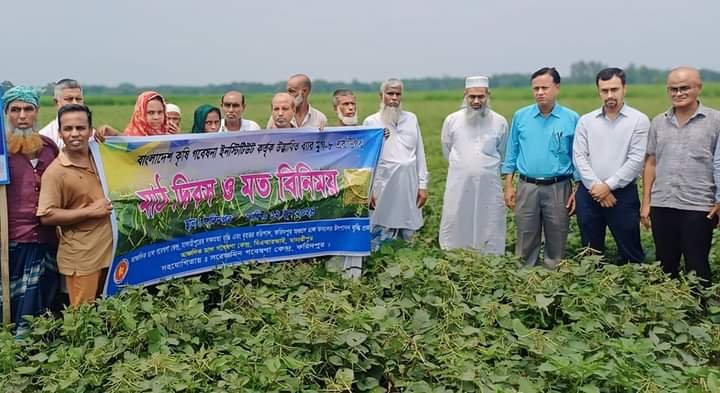 বাংলাদেশ কৃষি গবেষণা ইনস্টিটিউটের সরেজমিন গবেষণা বিভাগ, ফরিদপুর এর উদ্যোগ গতকাল বুধবার ফরিদপুর জেলার সদর উপজেলার তাম্বুলখানা গ্রামে ডাল ফসলের উৎপাদন বৃদ্ধি প্রকল্পের অধীনে মাঠ দিবস ও মত বিনিময় সভা অনুষ্ঠিত হয়েছে। প্রকল্পের ফরিদপুর অঞ্চলের প্রধান বৈজ্ঞানিক কর্মকর্তা ড. সেলিম আহম্মেদের সভাপতিত্বে অনুষ্ঠানে প্রধান অতিথি হিসেবে উপস্থিত ছিলেন ড. মোঃ ছালেহ উদ্দিন পরিচালক, ডাল গবেষণা কেন্দ্র ঈশ্বরদী, পাবনা। এ ছাড়া বিশেষ অতিথি হিসেবে উপস্থিত ছিলেন ড. একেএম মাহাবুবুল আলম বৈজ্ঞানিক কর্মকর্তা, ডাল গবেষণ উপকেন্দ্র, গাজীপুর। ড. মো. আলাউদ্দিন খান মসলা গবেষণা উপ-কেন্দ্রের, প্রধান বৈজ্ঞানিক কর্মকর্তা , বিএডিসি ফরিদপুর। কৃষিবিদ মোঃ আনোয়ার হোসেন সদর উপজেলা কৃষি অফিসার, ফরিদপুর। সহকারি বৈজ্ঞানিক কর্মকর্তা মো. হুমায়ুন কবিরের সঞ্চালনায় অনুষ্ঠানে আরও উপস্থিত ছিলেন ওই অঞ্চলের উপসহকারী কৃষি কর্মকর্তা ও সংশ্লিষ্ট বৈজ্ঞানিক সহকারীবৃন্দ। মাঠ দিবসে দুই শতাধিক কৃষাণ কিষানী অংশগ্রহন করেন। এ বছর তাম্বুলখানা গ্রামে বারি মুগ-৬ ও বারি মুগ-৮ এর বাম্পার ফলন হয়েছে। এই জাত দুটি উচ্চ ফলনশীল ও লাভজনক হওয়ায় কৃষকরা পাট চাষের পাশাপাশি এর আবাদে আগ্রহী হচ্ছে। এবছর তাম্বুলখানা গ্রামে ৪ একরের বেশি জমিতে মুগ ডাল আবাদ করেছে কৃষকরা। অতিথিরা কৃষকদের সাথে বারি মুগ-৬ ও বারি মুগ-৮ এর উৎপাদন কার্যক্রমের মাঠ পরিদর্শন করেন এবং উপস্থিত সবাই বারি উদ্ভাবিত আধুনিক মুগ ডাল জাতসমূহ গ্রহণ করার আশাবাদ ব্যক্ত করেন।