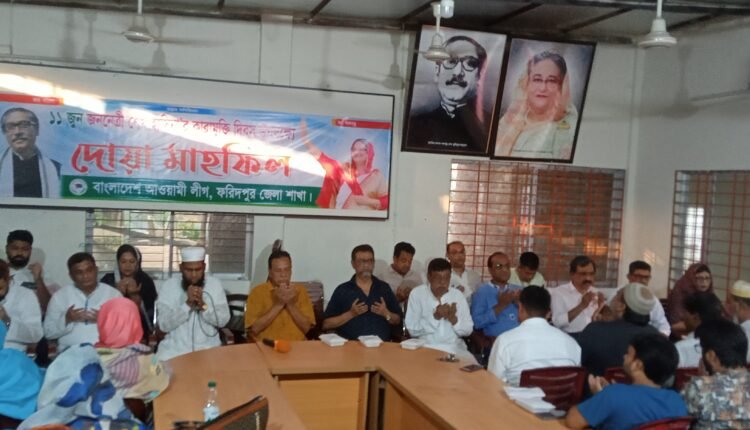 ১১ জুন জননেত্রী শেখ হাসিনার কারা মুক্তি দিবস উপলক্ষে ফরিদপুর জেলা আওয়ামী লীগ এর উদ্যোগ দোয়া মাহফিল অনুষ্ঠিত হয়।