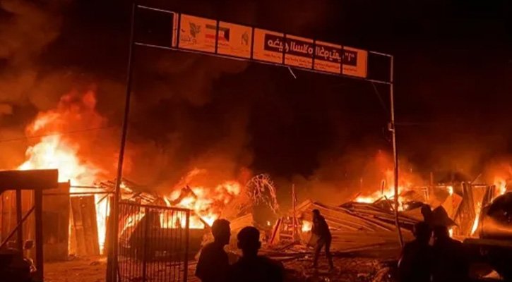 সংস্থাটি প্যালেস্টাইন রেড ক্রিসেন্ট সোসাইটির (পিআরসিএস) উদ্ধৃতি দিয়ে বলেছে যে তাঁবুর ভিতরে থাকা অনেক লোক আগুনে পুড়ে মারা গেছে।