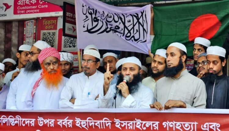 ইসরাইল যেভাবে ফিলিস্তিনি মুসলমানদের জন্য বিষফোঁড়া, তদ্রুপ জৈনবাদী ভারত বাংলাদেশ ভূ-খণ্ডের জন্য বিষফোঁড়া, ওরা বাংলাদেশকে তিলে তিলে শেষ করে দেওয়ার জন্য পায়তারা করছে। এই ভারতের বিরুদ্ধে সকল বাঙালি মুসলমানদের কে ঐক্যবদ্ধ হতে হবে ভারতের সকল পণ্য বর্জন করতে হবে। আজকের সমাবেশ থেকে বাংলাদেশের মুসলমানদেরকে ইসরাইলী ও ভারতীয় পণ্য বর্জন করার জন্য জোরদার আহ্বান জানাচ্ছি।