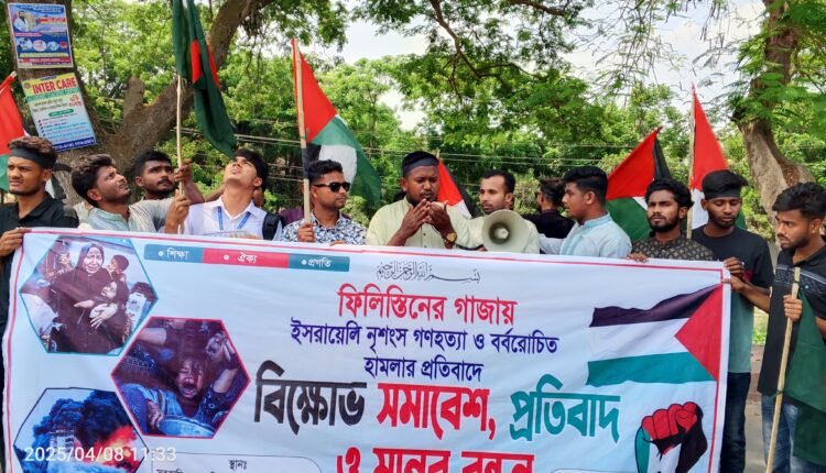 এ সময় উপজেলা ছাত্রদলের আহবায়ক মোঃ ইসমাইল হোসেন ও যুগ্ম আহ্বায়ক নাহিদুল ইসলাম সাগর এক যৌথ বক্তব্য বলেন, “ইসরাইলের বর্বর হামলায় ফিলিস্তিনের নিরীহ নারী, শিশু ও সাধারণ মানুষ প্রাণ হারাচ্ছে। এই মানবতা-বিরোধী অপরাধের বিরুদ্ধে বিশ্ববাসীকে সোচ্চার হতে হবে। বাংলাদেশ ছাত্রদল সবসময় নিপীড়িত মানুষের পক্ষে রয়েছে এবং থাকবে।” কর্মসূচিতে উপস্থিত ছিলেন উপজেলা ছাত্রদলের আহবায়ক মোঃ ইসমাইল হোসেন, সিনিয়র যুগ্ম আহ্বায়ক নাহিদুল ইসলাম সাগর, যুগ্ম আহ্বায়ক মোঃ আবু নাসিম,পৌর ছাত্রদলের মোহাম্মদ ইয়াসিন , মোঃ ইয়েন মুন্সী, তানভির আহম্মেদ সায়াদ কলেজ ছাত্রদলের এস এম বাহাউদ্দীন, মোঃ হাবিবুল্লাহসহ আরও অন্যান্য নেতৃবৃন্দ। উপজেলা ছাত্রদলের যুগ্ম আহবায়ক মোঃ আবু নাসিম বলেন ফিলিস্তিনের জনগণের পাশে থাকার প্রত্যয় ব্যক্ত করেন এবং এই নৃশংসতার বিরুদ্ধে আন্তর্জাতিকভাবে কঠোর পদক্ষেপ গ্রহণের আহ্বান জানান।