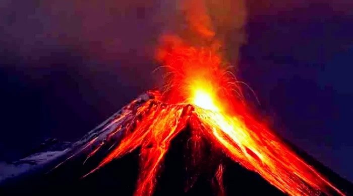 ফুটন্ত লাভায় আকাশ হলো লাল
