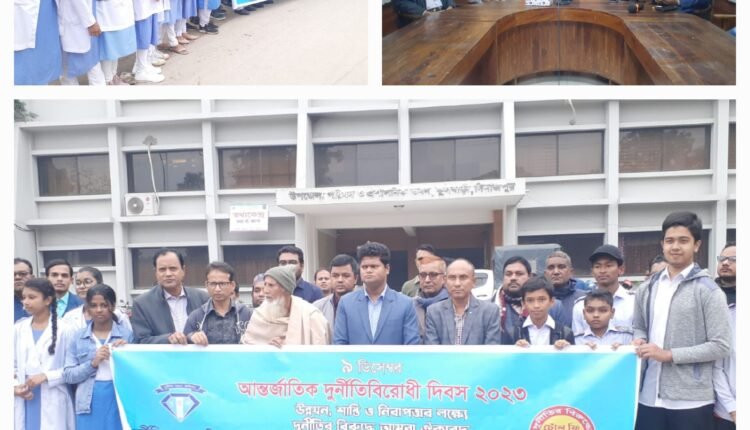 “উন্নয়ন, শান্তি ও নিরাপত্তার লক্ষ্যে দুর্নীতির বিরুদ্ধে আমরা ঐক্যবদ্ধ” শীর্ষক প্রতিপাদ্যকে সামনে রেখে দিনাজপুরের ফুলবাড়ীতে শনিবার (৯ ডিসেম্বর) আন্তর্জাতিক দুর্নীতিবিরোধী দিবস উপলক্ষে মানববন্ধন ও আলোচনা সভা অনুষ্ঠিত হয়েছে।