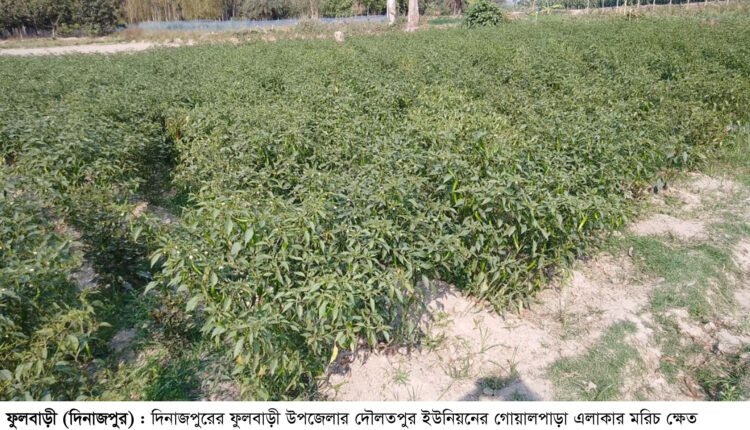 ফুলবাড়ীতে মরিচের বাম্পার ফলন হলেও হাসি নেই কৃষকের মুখে