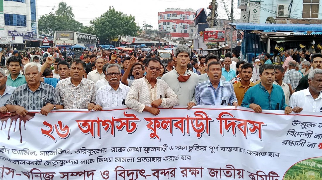 এর আগে সকালে দিবসটি উপলক্ষে তেল গ্যাস খনিজ সম্পদ ও বিদ্যুৎ বন্দর রক্ষা জাতীয় কমিটি, ফুলবাড়ী পৌরসভার মেয়র ও আমরা ফুলবাড়ীবাসীসহ বিভিন্ন সংগঠনের ব্যানারে ২৬ আগস্টে নিহতদের স্মরণে পৌর শহরে শোক র্যালি বের করা হয়। র্যালি নিয়ে শহর প্রদক্ষিণ শেষে শহীদ বেদিতে শ্রদ্ধাঞ্জলি অর্পণ করা হয়।